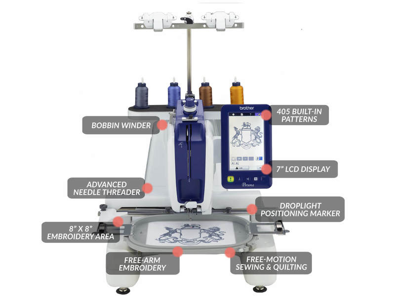 Persona PRS100 is the most versatile, single-needle embroidery machine that can do sew much more! Its tubular free-arm configuration gives you the flexibility and ease to embroider difficult-to-reach areas, all while reducing fabric tangles. Plus, its mere 18-inch-wide footprint makes it the perfect addition to any room in your house. Persona advances your creativity with key features such as anytime bobbin access, large embroidery area, free-arm embroidery and Droplight(TM) Embroidery Positioning Marker. Time-saving conveniences such as side bobbin winding and easy thread colour changes make creating even easier. With your choice of included embroidery frames, especially the new and exclusive mini frames, your embroidery options are endless. Sew Versatile. Sew Creative. Sew Much Personalization. Do more with one!
